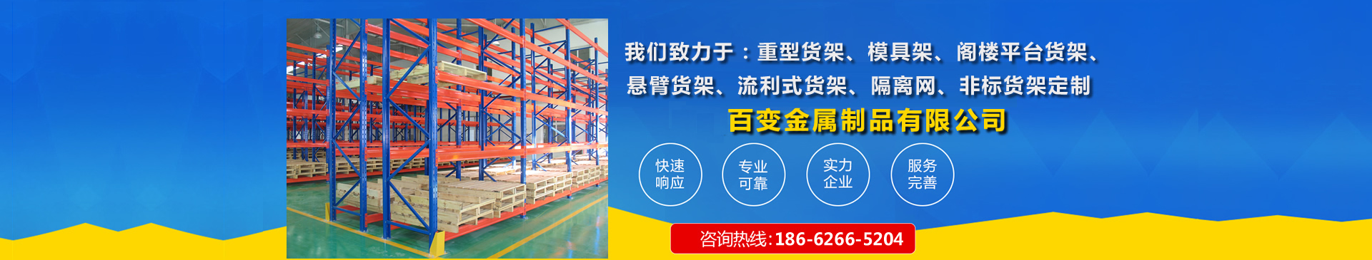 芜湖百变金属制品有限公司是从事仓储货架设计制造、销售、安装服务一体化的专业性货架及其自动化周边配套设备的制作型公司,重型货架,仓库货架,悬臂货架,模具架,阁楼货架,钢平台,流利式货架,贯通货架,工作台,推车,汽车料架等非标产品定制 -芜湖百变金属制品有限公司 多年来致力于为各个行业广大客户的工厂、仓库及物流中心提供存储系统的解决方案和细致周到的全程服务。